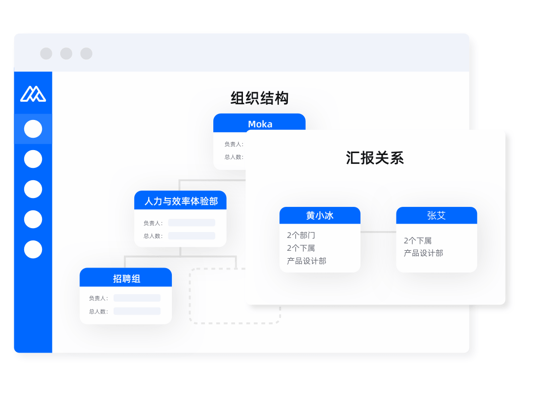 - 可视化组织架构: 可视化组织架构呈现,汇报关系一目了然;
