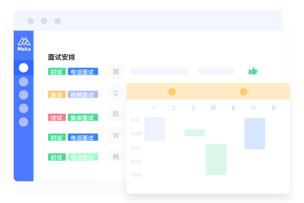 - 面试日历: 统筹多场次面试安排,HR、面试官、候选人之间高效协同;