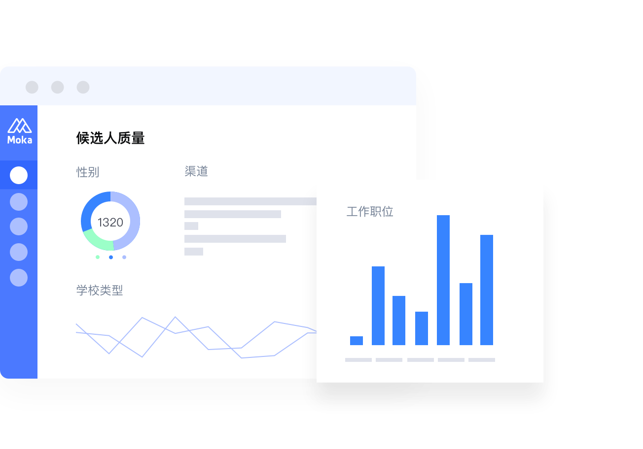 候选人分析: 从候选人的性别、年龄、工作经验、职位、地域等多维度对人才进行分析,帮助企业进行现有人才盘点,指导未来的人才计划;