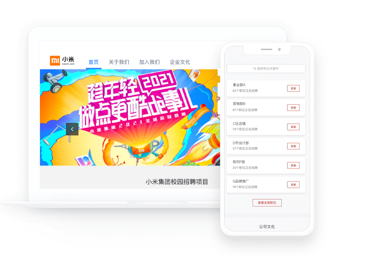 围绕宣讲会、Open Day的需求,Moka提供招聘官网模板,HR可自主搭建多品牌的校招官网/官微,结合社交媒体的传播和富媒体的内容呈现,吸引优秀生源。